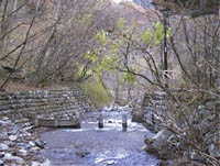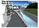 | 丸木橋 | 現況に丸木橋を設置し、 そこに子供を配置して、ど のように見えるかシミュレ ートしています。 |