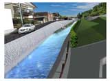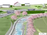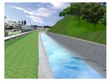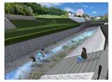 | 堰堤 | 現況に越提を設置し、そ こに人間を配置して、どの ように見えるかシミュレート しています。 |