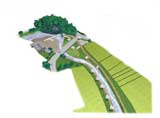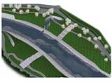 | 吊り橋 | 現況に吊り橋を設置し、 どのように見えるかシミ ュレートしています。 |