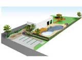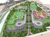 | フォとモンタージュとは、現況写真に新たに造ろうとする施設の絵を合成したものです。特徴として、実写で あるため実際のイメージでの検討が可能です。また、写真であるため視点の変更は難しい。色の変更は容 易である。 |
